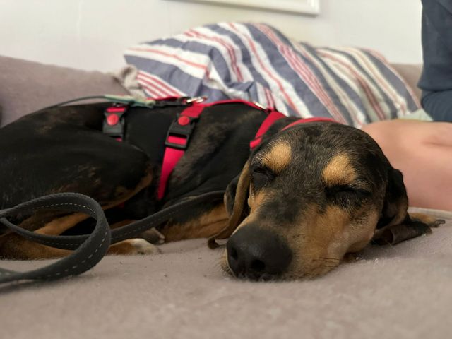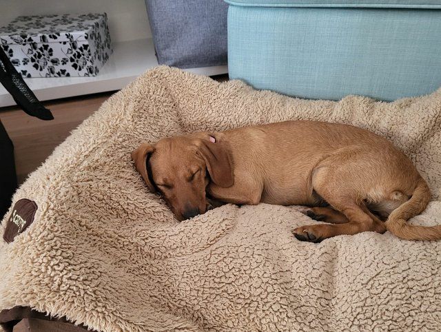 Lola wartet in einer Pflegestelle, alle anderen Hunde sind bereits vermittelt, haben neue Familien gefunden – und sowohl "hüben wie drüben" sind alle glücklich und zufrieden.
