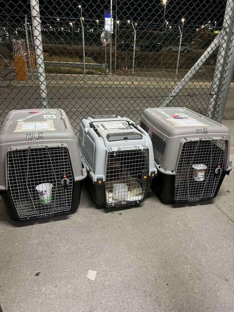 Mit an Bord waren: Gipsy, Mia, Ritchie und Munro. Gipsy und Mia warten jetzt in Pflegestellen auf liebe Menschen, die anderen beiden sind bereits vermittelt und leben sich nun ein.