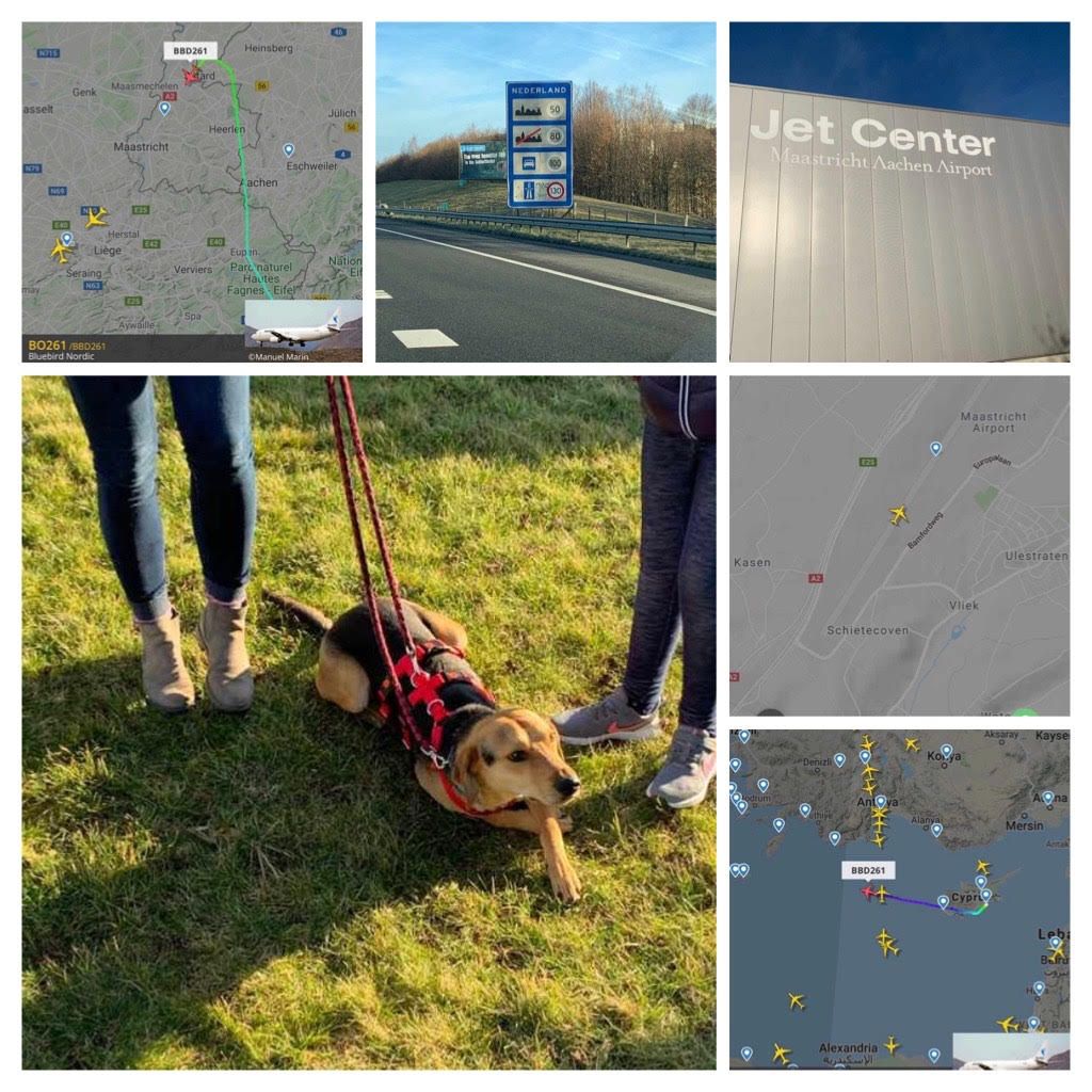 In aller Früh ging es auf nach Maastricht. Unter Corona Bedingungen, spannend, erwartend, mit Vorfreude bestückt… Auf der Fahrt wurde weiterhin das Flugzeug „beobachtet“… Oh… Landung in Maastricht, wir noch auf der Autobahn… Hoffentlich geht alles gut, hoffentlich denken sie nicht, wir kommen nicht mehr, hoffentlich bekommen wir trotzdem den Hund, auch wenn wir noch nicht dort sind…. Die Gedanken fuhren Achterbahn. Kurze WhatsApp in die Gruppe: „…wir sind noch nicht vor Ort, sind aber bald dort…!“ Nachricht der Mädels zurück:“…fahrt vorsichtig, die Unterlagen und Tiere müssen erst noch kontrolliert werden.“ Ankunft! WhatsApp der Orga, wir erhalten eine kurze Nachricht / Anruf, wenn unser Hund „fertig“ ist und abgeholt werden kann.