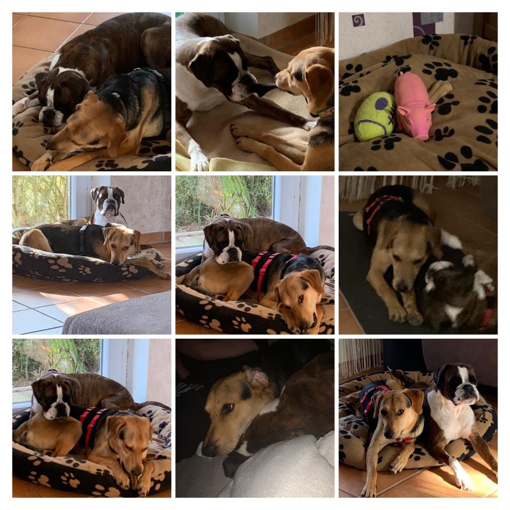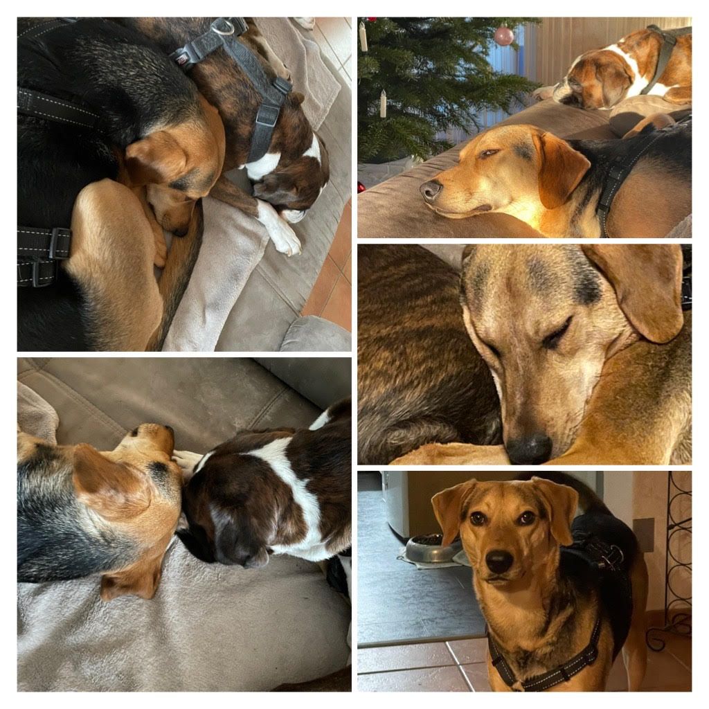 Was soll ich sagen…!!! Wir gehören zu den sogenannten Pflegestellenversager und sind ganz schön stolz darauf. Nach einem Jahr, rückblickend, kann ich sagen, es war das Beste, was wir gemacht haben. Er fing nach einigen Tagen an, mit beiden Vorderbeinen zu buddeln, er wollte Mäuse jagen… Sein Jagdtrieb ist wahnsinnig vorhanden, sodass er noch immer schön die Leine trägt. Sein Muskel ist wieder aufgebaut, durch eigene Physio, durch eigene TENS-Übungen, viel Bewegung, viel Buddeln in Sand, Erde und Wasser…. Er blüht langsam auf, nach einem Jahr kann man sagen, er stiftet die Hündin zum Toben an, er bietet sich zum Spielen an, er hat Flausen im Kopf, gibt deutliche Zeichen, wenn er raus möchte, er hat sich toll in die Familie integriert, er meistert immer mehr „unheimliche“ Dinge... Er war mit im Urlaub auf dem Campingplatz im letzten Sommer, dort haben wir einige unheimliche Dinge neu kennengelernt…