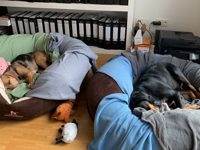 Was noch nicht so gut klappt und wo wir noch Zeit und Geduld brauchen ist die Stubenreinheit. Trotz dass wir alle vier Stunden spazieren gehen mit beiden Hunden, auch nachts, passiert das ein oder andere Missgeschick auf dem Teppich. Belle ist mit den vielen neuen Eindrücken beim spazieren gehen noch überfordert und vergisst dadurch ihr „Geschäft“ zu erledigen. Warten wir einmal ab, wie sich das die nächsten ein bis zwei Wochen, auch aufgrund der Ratschläge von Frau Schlotfeldt, entwickelt.