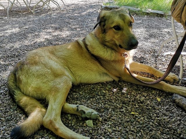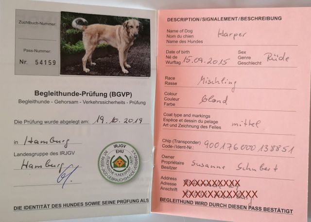 Harper ist nicht nur in seiner Fellfärbung ein Goldjunge: ganz charmant und schmusig, gut verträglich mit anderen Hunden. Bei Kläffern macht er, wie die anderen beiden auch, lieber einen Bogen. Menschen findet er toll, dabei ist er etwas "aufdringlich", das gefällt nicht jedem. Die, die ihn kennen, sind ganz begeistert und kraulen ihn auch wenn er Maulkorb trägt. Ich habe auf Rückfrage die Umstände erklärt und bislang fanden alle ausnahmslos diese Lösung gut, mutig und verantwortungsbewusst. Den Maulkorb hat er draußen immer und drinnen häufig an. Harper hat eine niedrige Hemmschwelle und wenn er dann ungehalten ist, schnappt er nicht, er beißt - leider. Aber mit dem Maulkorb, den er gut akzeptiert, ist er gesichert und wir auch. Insbesondere Iva braucht diesen Schutz vor ihm. Die beiden haben so ein unsichtbares Ding am laufen. Iva "steht" häufig ungünstig und wenn der Große meint, sie ist ihm im Weg, dann geht er schon mal drauf. Da hat die kleine Maus nix gegenzusetzen. Zwei-/dreimal hab ich ihm (seit er Maulkorb trägt) schon beim Schlawittchen gepackt, da wollte er dann auf mich los. Aber nur für den Bruchteil einer Sekunde, dann hat er kapiert, was los ist und mit meiner Entspannung hat er sich dann auch entspannt. In kleinen Schritten - 2 vor, 1 zurück - wird das besser und er lernt, sich zu beherrschen. Aber der Weg ist noch lang... Das alles tut unseren Schmuserunden aber keinen Abbruch und er genießt Aufmerksamkeiten, Gassirunden, feines Futter und hier und da ein Leckerchen.