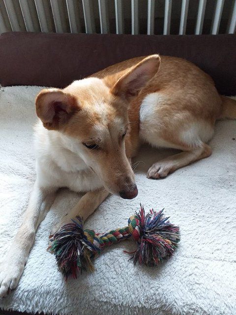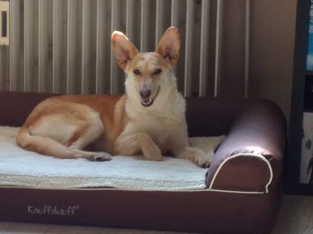 Es ist einfach wunderschön zu sehen, wie Alma immer freier und entspannter wird. Sie rollt zum Beispiel mit dem Innenkissen ihres Körbchens durch das Zimmer, liebt es Socken zu "klauen" und in ihr Körbchen zu bringen, ihr Stückchen Ochsenziemer zu kauen oder sich ausgiebig kraulen zu lassen.