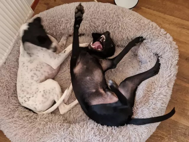 Duke hatte Glück, passte nach seiner Beschreibung perfekt zu der vorhandenen Hündin, Zenobia, ebenfalls aus Zypern und so nahm alles seinen Lauf. Wie prima sich alles gefügt hat, wie toll die Hunde zusammenpassen – das zeigen die Bilder und erzählt der Text. Hach ja, sagte ich schon, dass wir uns freuen? :-).