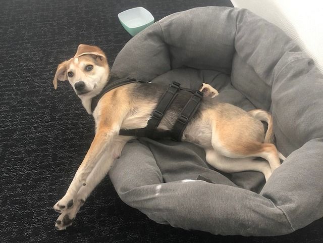Eine lange Fahrt aus Nordmazedonien hatte ich hinter mir und konnte mit dem neuen Geschirr, der Leine und den neuen Menschen noch nichts anfangen. Darum rollte ich mich lieber erst einmal über den Parkplatz. Dann ging es schon wieder ins Auto, aber diesmal nicht so lange. Die ersten Tage im neuen Zuhause waren ein bisschen beängstigend und ich war froh, wenn ich in meinem Körbchen bleiben konnte. Zuerst habe ich meine Hundekumpel sehr vermisst.