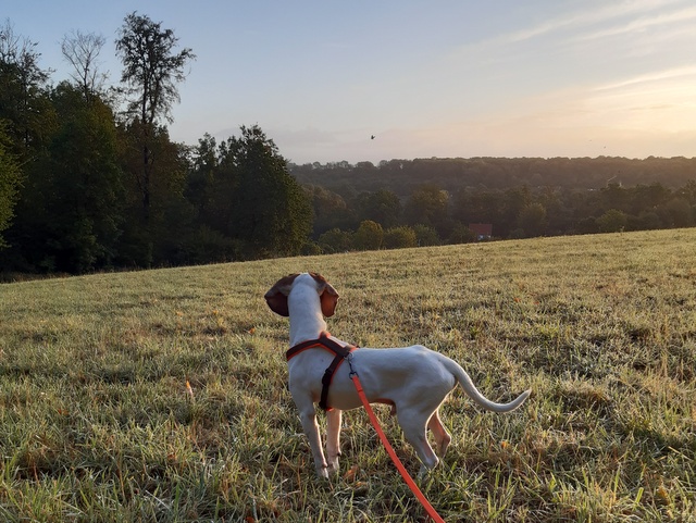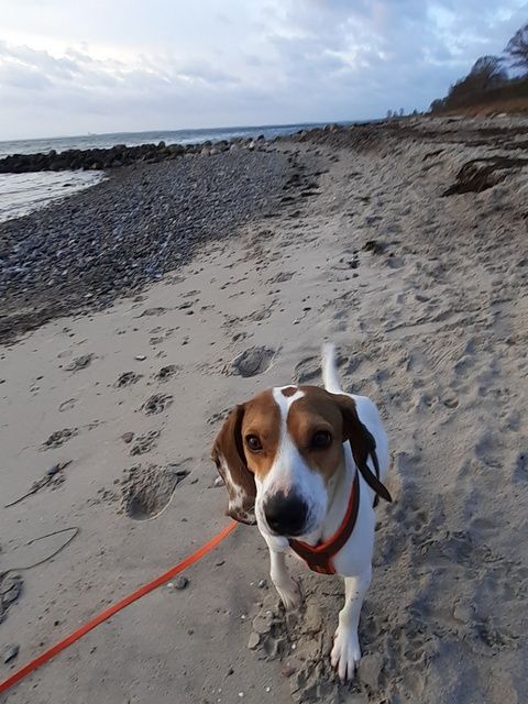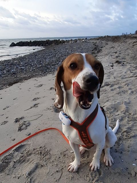 Draußen ist er hingegen aktiv und interessiert. Er hat auch einen Jagdtrieb, wobei er am liebsten im Unterholz stöbert. Aber er lässt sich trotzdem gut abrufen, was wir natürlich nur im Freilauf ohne Leine mit ihm üben. Wir laufen viel mit ihm, er geht mit uns joggen oder wir machen Radtouren.