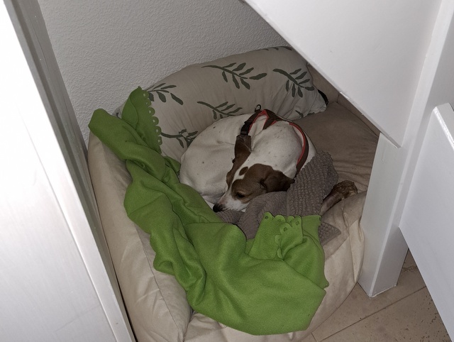 Gleich zu Anfang ist mir positiv aufgefallen, dass sowohl auf der Homepage als auch von der Pflegestelle eine gute Einschätzung von Hugo stattgefunden hat. Ich denke, dass das wichtig ist, da man aus der Ferne auch darauf angewiesen ist. Was mir beim ersten Kennenlernen aufgefallen ist, war dass Hugo zwar etwas zurückhaltend, aber sehr freundlich gegenüber Menschen war. Das ist natürlich wichtig, wenn man in Familie lebt und regelmäßig auch andere Menschen nach Hause kommen. Er ist zu Hause total angenehm, ganz lieb und ruhig. Er bellt nicht einmal, wenn es klingelt. Er ist sehr gelehrig und versucht, alles richtig zu machen und liegt auch sehr gerne in seiner Ecke. Nur, wenn es Futter gibt, dann kann ihn nichts mehr halten 😉.
