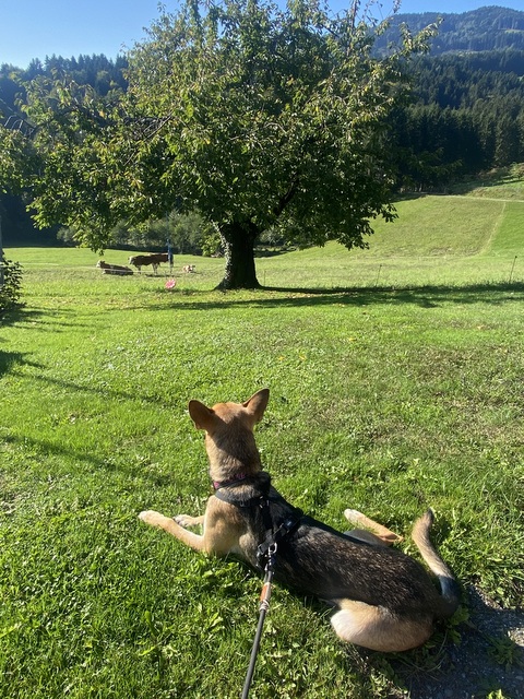 Ich habe mich super schnell eingelebt – das Stadtleben gefällt mir richtig gut! Ich laufe gerne durch die Straßen, entdecke neue Gerüche und liebe es, überall dabei zu sein. Aber genauso gern genieße ich unsere Ausflüge in die Berge oder in den Wald – frische Luft, weite Wiesen, spannende Spuren! Der Mix macht’s, und genau das finde ich großartig. 🐕🌳In der Hundeschule bin ich ein richtiger Musterschüler – na gut, außer beim ruhigen Sitzen, da muss ich noch ein bisschen üben. 😉