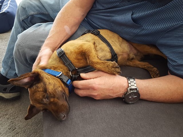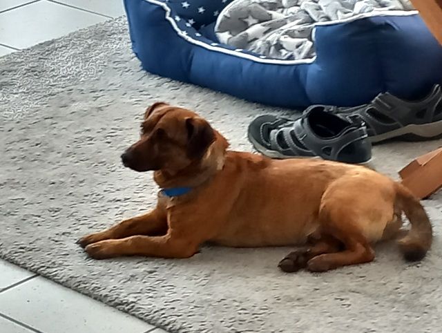 Auf Zypern war ich ganz traurig in einer Tötungsstation. Das war ganz doof. Es roch ziemlich nach Tod. Nach einiger Wartezeit sagte man mir das ich zu netten Menschen nach Deutschland komme. Das dauert aber noch etwas!! Immer wenn ich Besuch von den lieben Leuten von Hundeliebe-grenzenlos bekam, sagten sie:“ Keo, nitt mehr lang".