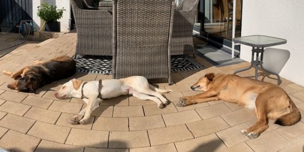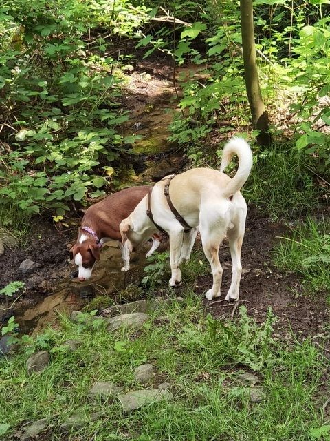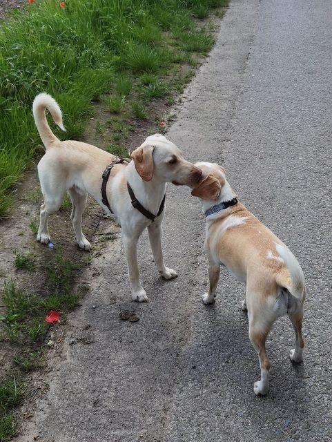 Ich sehe täglich meine Freunde (Cupa, Mogli, Rosie), die ebenfalls aus dem Tierschutz kommen und wir machen täglich zusammen Spaziergänge und spielen miteinander.