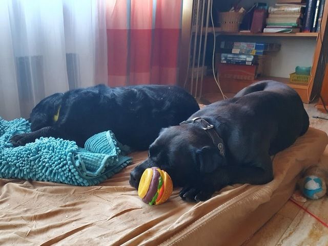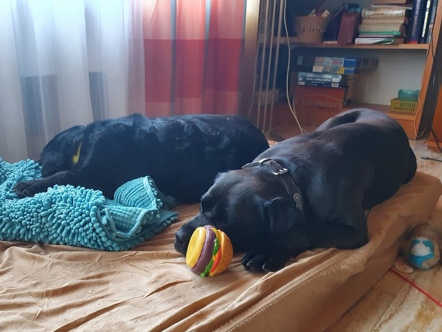 Nach Rücksprache mit meiner Tierärztin habe ich die Zähne in Frieden gelassen, da Maya mit diesen super zu Recht kommt. Für den Hinterlauf gab es zunächst regelmäßig ein Schmerzmittel. Da Maya aber 4-mal täglich mit mir Gassi gehen muss, entwickelte sie zügig genügend Muskeln, um auch beim Rennen den rechten Hinterlauf zu belasten. Da sie aber sicherlich eine Hüftarthrose hat, bekommt sie seit 6 Monaten Librella. Damit hat ihre Bewegungsfreude nochmals zugenommen.