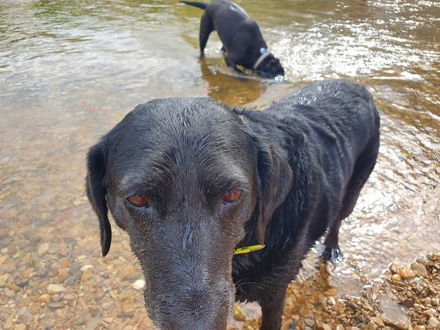 Auf den Bildern zeigte sie einen Labrador-Mix Phänotyp und dieser kommt definitiv raus, wenn Wasser in der Nähe ist. Dann rennt Maya ins Bachbett oder in den See, beißt in das Wasser und tanzt. Mich freut das Verhalten sehr. Denn dann sehe ich ihre verspielte Seite, die ganz selten rauskommt. Sie hält nichts von Kuschel/Kautieren und auch andere Hunde werden bis auf ganz wenige Ausnahmen nicht bespielt. Maya hat auch keinen Interesse Dinge in ihrem Maul herumzutragen. Jedoch habe ich sie zwei Mal erwischt als sie einmal einen kleinen Karton und einmal ein von mir getragenes Tuch zerpflückt hat. Offenbar mag sie meinen Körpergeruch, denn sie legt sich sehr gerne in den Wäschekorb mit der Dreckwäsche. Das macht sie ganz zufrieden. Mit einem Futterball konnte ich Maya etwas zum Spielen bringen. Seit ein paar Wochen benutzt sie jetzt ihre Pfote, um meine Aufmerksamkeit zu erregen. Es ist so schön zu sehen, dass Sie keine Angst vor mir hat und weiter auftaut.
