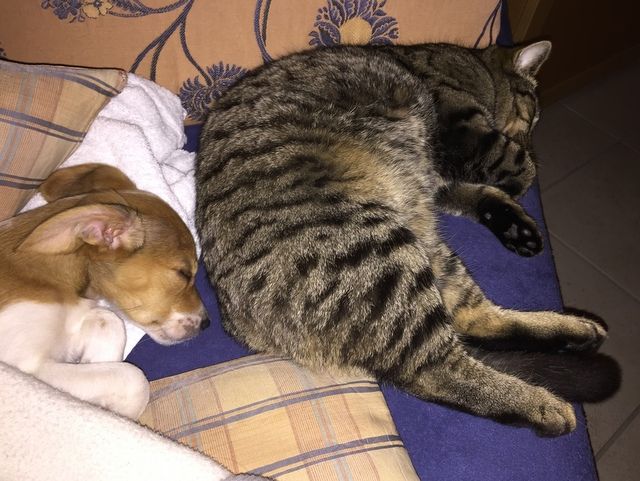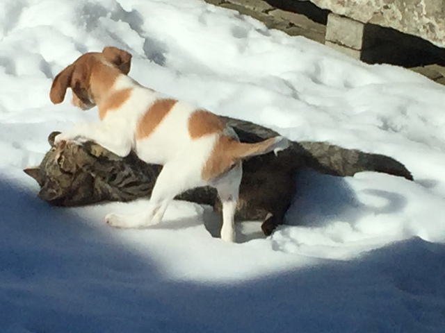 Einzig unser Kater, den sie gerne mal in Terriermanier piesackt, ist nicht immer sehr begeistert, auch wenn er meist äußerst gutmütig darüber hinwegsieht, dass man ihm einen Hund vor die Nase gesetzt hat.
