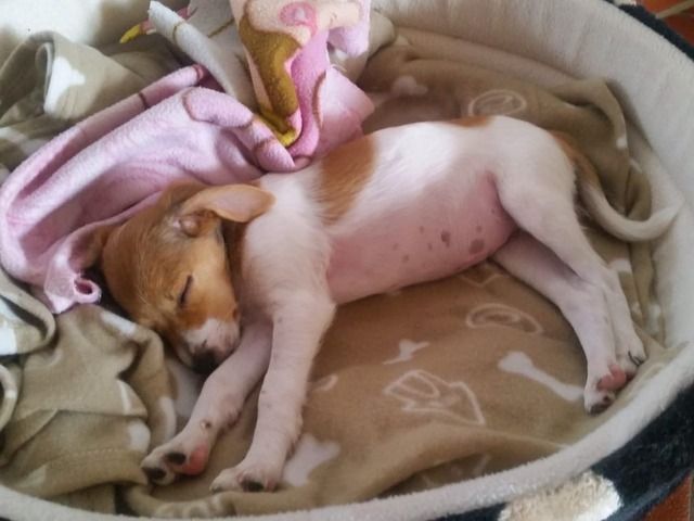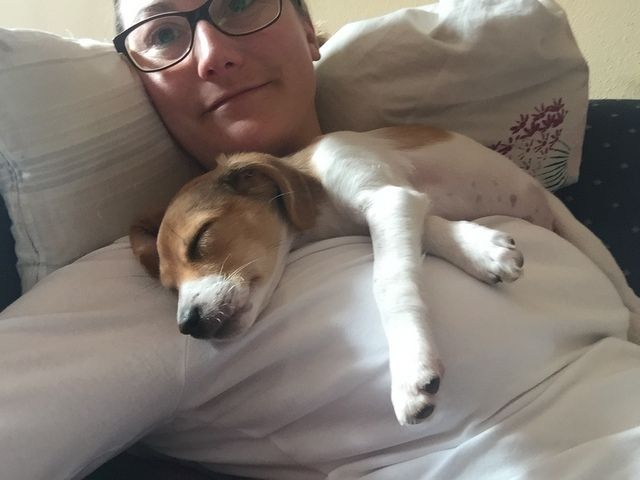 Als ich meine Vermittlerin Nina mit dem winzigen, sehr dünnen Bündelchen auf dem Arm am Flughafen Hamburg auf mich zulaufen sah und sie mir die kleine Maus auf den Arm gegeben hat, war es sofort klar, dass wir zwei jetzt zueinander gehören. Mollie war, glaube ich, klar, dass sie jetzt angekommen ist.