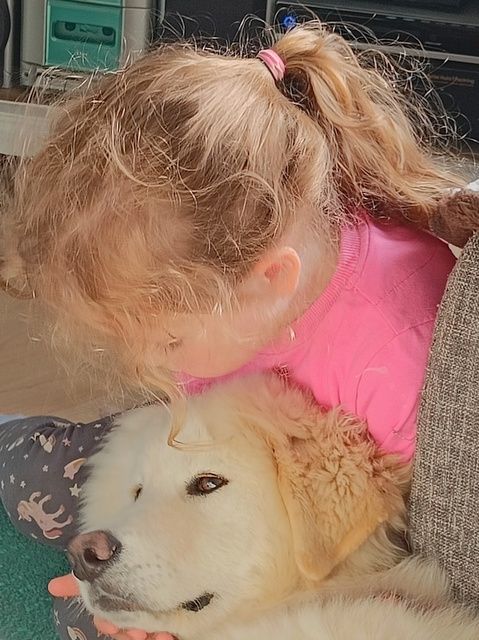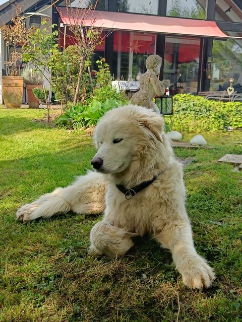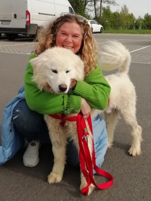 Nino, ein ganz besonderer Hund, der den weiten Weg aus Nordmazzedonien zu uns gefunden hat. Ich habe sein Bild gesehen und ich wusste genau, der oder keiner. Wir holten ihn am 27.4.2024 vom Rastplatz Lotte ab und es was als ob er immer schon zu uns gehört hat. Er ist ein wunderbarer Hund, der mit seiner Lebenslust alle Herzen erobert. Der Blick in sein niedliches Gesicht, vergibt ihm alles. Dieser Hund ist für alle die ihm begegnen eine Freude. Nino ist ein wahrer Herdenschutzhund. Er hat zwar keine Herde von Schafen, aber er ist der Mittelpunkt unserer Familie geworden. Wir brauchten einen Engel und wir bekamen eine mit 4 Pfoten.