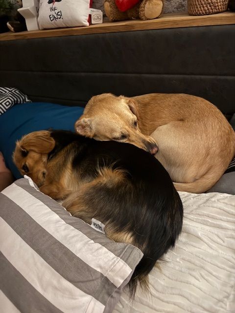 Um auf Sunnys Versprechen zurückzukommen: Ja, mir geht es wirklich sehr gut. Ein Traum für ein jeden Vierbeiner. Ich hab mich nicht nur total in Sunny verliebt, sondern tatsächlich auch ganz schnell in die beiden 2-Beiner. Ich darf toben, kuscheln (am liebsten im Bett), in die Schule gehe ich auch schon, einfach toll. Und meinen notorisch leeren Magen füllen sie auch…. Manchmal😊
