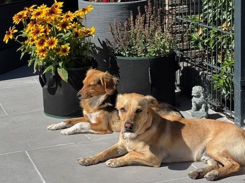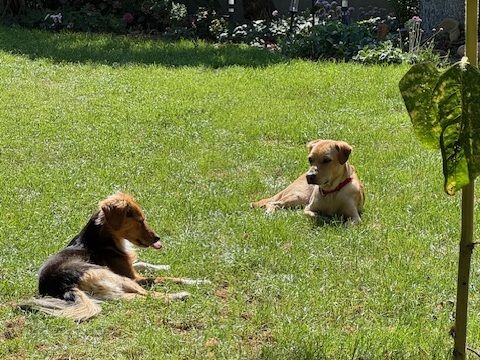 Ich fand das erstmal unglaublich. Die machten sich aus dem Südwesten bei Karlsruhe auf den weiten Weg nach Cuxhaven und brachten ihre Sunny mit, ein Mädel aus Griechenland, das sie 2 Jahre zuvor ebenfalls über Hundeliebe bei sich aufnahmen. Das Hunde-Mädel fand ich ja ganz hübsch, aber den beiden Menschen-Männern hab ichs erstmal gezeigt. So gut ich konnte hab ich mitgeteilt: Ich will euch nicht. Naja, eigentlich fand ich sie doch cool, aber es waren Männer. Also erstmal hartnäckig bleiben. Als wir ne Weile bei Vivi im Garten waren, fingen die an mich zu bestechen, spielten mit mir, es gab Leckerlies…. Und Sunny sagte mir dann: Stell dich nicht so an, bei den beiden geht’s dir sehr gut.