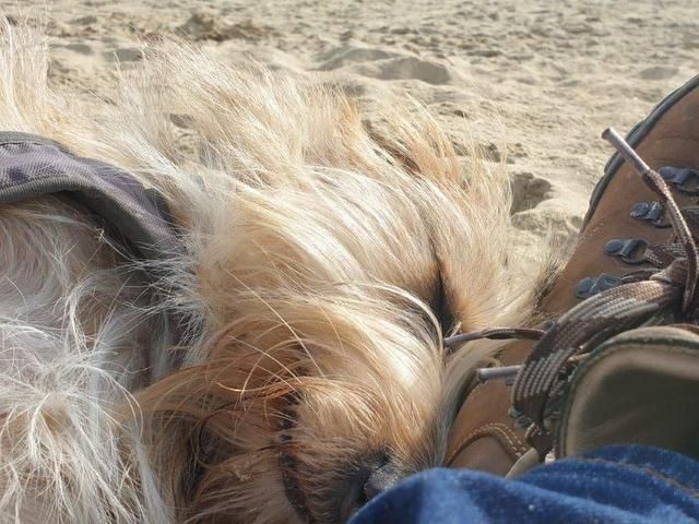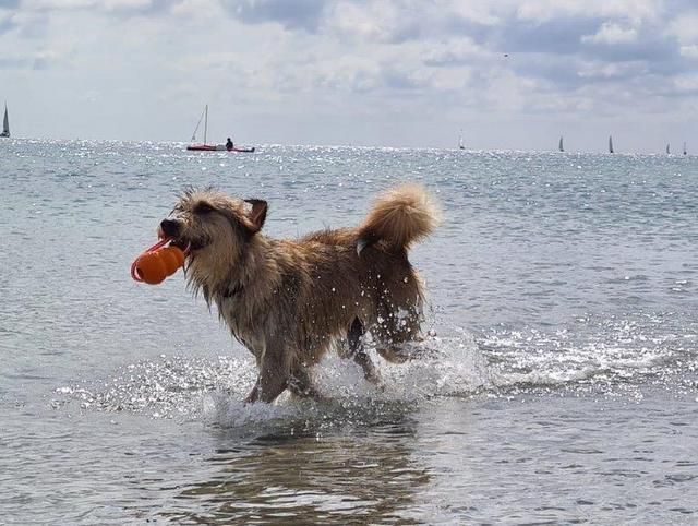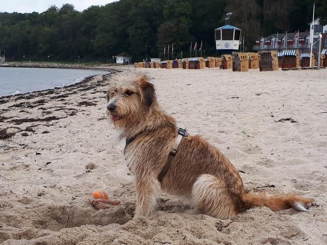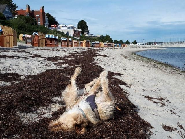 Im Sommer verbringen wir viel Zeit an der Ostsee, in Dänemark und Frankreich war ich auch schon. Ich liebe das Meer, plantsche gerne im Wasser und buddele wild am Strand herum. Am liebsten wälze ich mich in stinkenden Algen, das finden Frauchen und Herrchen komischerweise nicht so toll, aber es ist herrlich!