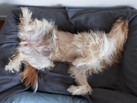 Da mir auf der langen Fahrt hierher die ganze Zeit total schlecht war, kam ich wie ein Häufchen Elend an. Ganz mager und verängstigt war ich. Alles war neu und zuerst war ich total schüchtern. Mit Leckerlis ließ ich mich aber gerne bestechen und bin langsam aufgetaut. Autofahren mag ich zwar immer noch nicht so gerne, aber ich will ja dabei sein und springe jetzt freiwillig rein. Die Stubenreinheit habe ich schnell gelernt und da es hier leckeres Futter gibt, ging es mir bald besser und auch meine Verdauungsprobleme verschwanden. Leider wurde beim erneuten Check auf Mittelmeerkrankheiten im Frühjahr 2021 festgestellt, dass ich Erreger der Babesiose und der Hepatozoonose in meinem Blut habe. Beide Krankheiten sind aber inaktiv ohne Symptome, hoffentlich bleibt das so. Gegen die Babesiose habe ich Spritzen bekommen. Zum Glück habe ich eine gute Tierärztin, die auf Mittelmeerkrankheiten spezialisiert ist.