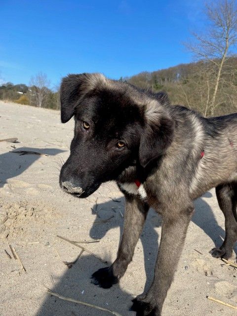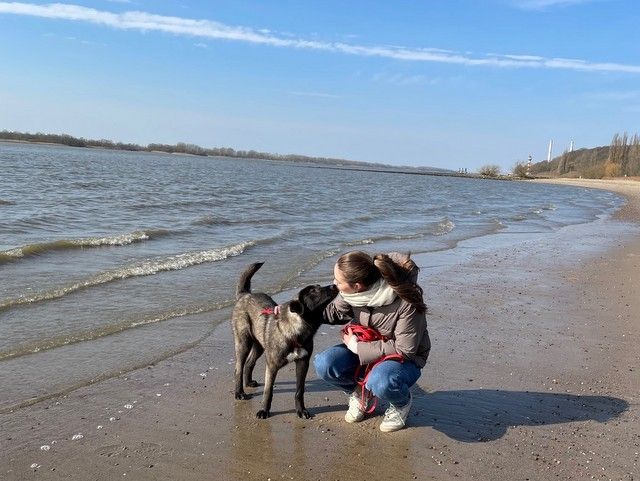 Kajas größte Liebe ist Sand. Darin kann man so toll rumtoben und buddeln, vor allem am Elbstrand. Das ist nur eines der Ausflugsziele, die Herrchen und Frauchen am Wochenende ansteuern, damit es immer spannend bleibt. Im Mai war Kaja auch das erste Mal im Urlaub in Dänemark und es hat ihr so gut gefallen, dass es sicherlich nicht das letzte Mal gewesen sein wird.