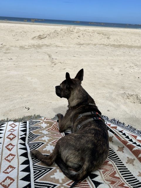 Im August trat ich dann mit meinem Frauchen und ihrer besten Freundin meine nächste große Reise an. Es ging in den Urlaub nach Frankreich. Das war vielleicht aufregend. Ich habe den Strand sehr geliebt. Nur schwimmen, naja davor hatte ich etwas Respekt, aber das war gar nicht schlimm. Wir haben viel unternommen und am Strand entspannt. Es war ganz spannend, die vielen Menschen und anderen Hunde dort zu beobachten. Ich habe es einfach geliebt. Was eine schöne Zeit.