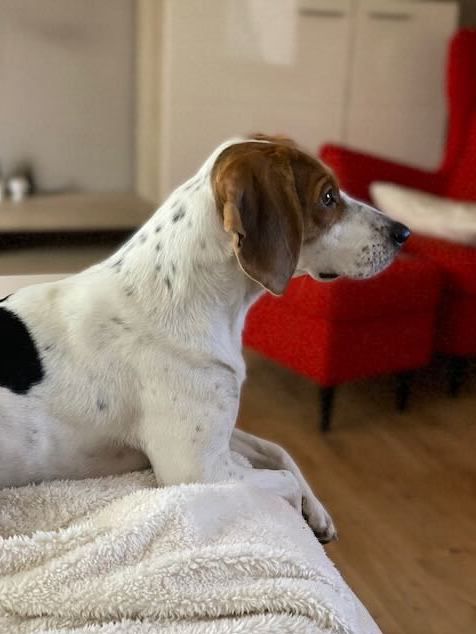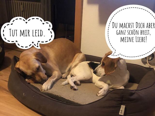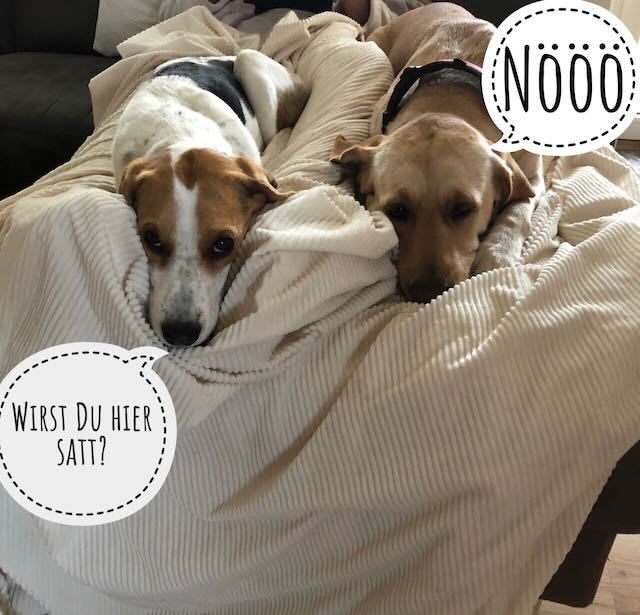 Wenn wir drei dann so richtig erschöpft sind, dann darf ich am Abend immer bei meinen Beiden auf der Decke auf dem Sofa liegen. Dabei werde ich dann richtig schön gekrault und kann über den schönen Tag nachdenken.