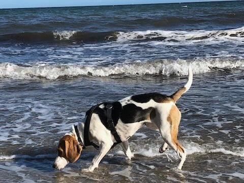 Wir waren auch schon am Meer. Die haben da einen Sandkasten, in dem durfte ich buddeln so viel ich wollte. Das war eine klasse Sache. Dort durfte ich dann dass erste mal ohne Leine laufen.
