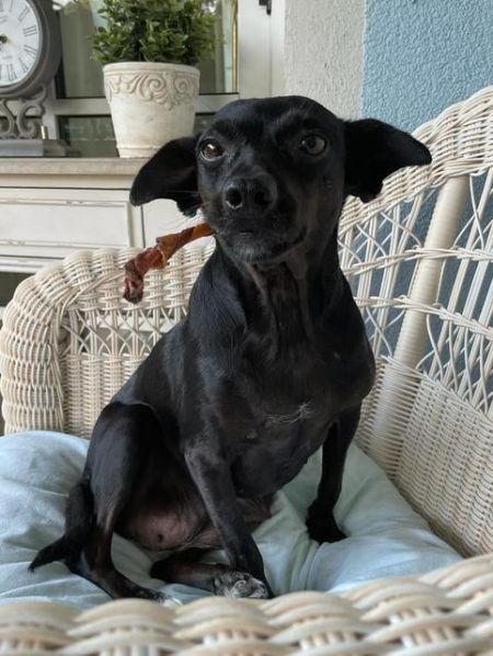 Um ihre dünnen Beinchen nicht mit Übergewicht zu belasten, kriegt sie als " Magenfüller " gekochte Karotten (mit 1/2 Tröpfchen Leinöl ) ins Futter oder wie auch Apfelscheiben als kleinen Zwischen-Snack. Sie liebt jegliche Art Obst. Neulich hat unsere Haushaltshilfe eine runtergefallene Mandarine nicht sofort aufheben können, schwups raste Pamina damit in den Garten und... verspeiste sie ! Schalen lagen ringsum ! Sie würde wirklich alles, alles fressen.
