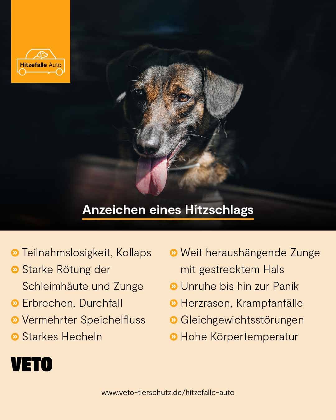 Wenn du an einem warmen Tag einen Hund im parkenden Auto findest, beobachte ihn genau. Dies sind klare Warnsignale für einen Hitzschlag: