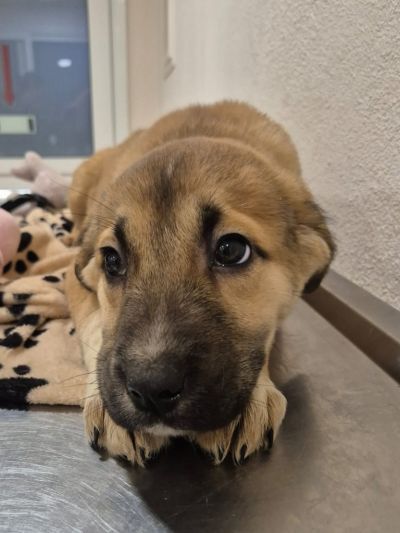 Dieses winzige Welpenmädchen hatte einen schweren Start ins Leben. Ihre tapfere Mama Artemis wurde hochschwanger an einer stark befahrenen Straße gefunden – völlig erschöpft und allein. Zwölf Welpen brachte sie zur Welt, drei davon haben es leider nicht geschafft. Unsere Kleine gehört zu den Kämpfern, die trotz aller Umstände ihren Weg ins Leben gefunden haben.