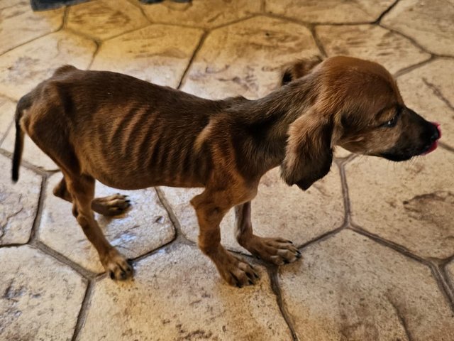 Bambi - ein ganz zauberhafter kleiner Rüde wurde von seinem Besitzer einfach entsorgt und mit seinen Geschwistern sich selbst überlassen. Die drei wurden gefunden und Tierschützer haben sie zuerst mal zum Tierarzt gebracht, weil sie in einem sehr schlechten Zustand waren. Alle drei waren Haut und Knochen und völlig verwurmt, das sechste Bild bei Bambi zeigt annähernd den Zustand, wie die Welpen aufgefunden wurden. Nun haben sie alle nötigen Medikamente bekommen und ergänzende Nahrungsmittel sowie gutes Futter, so dass sie sich weiterhin gut entwickeln können. Alle warten natürlich sehnsüchtig auf ihr eigenes, liebevolles Zuhause.