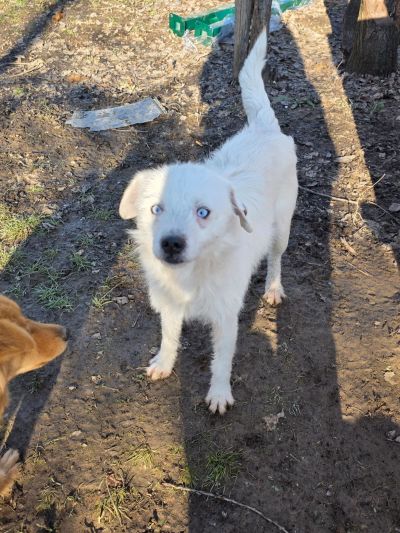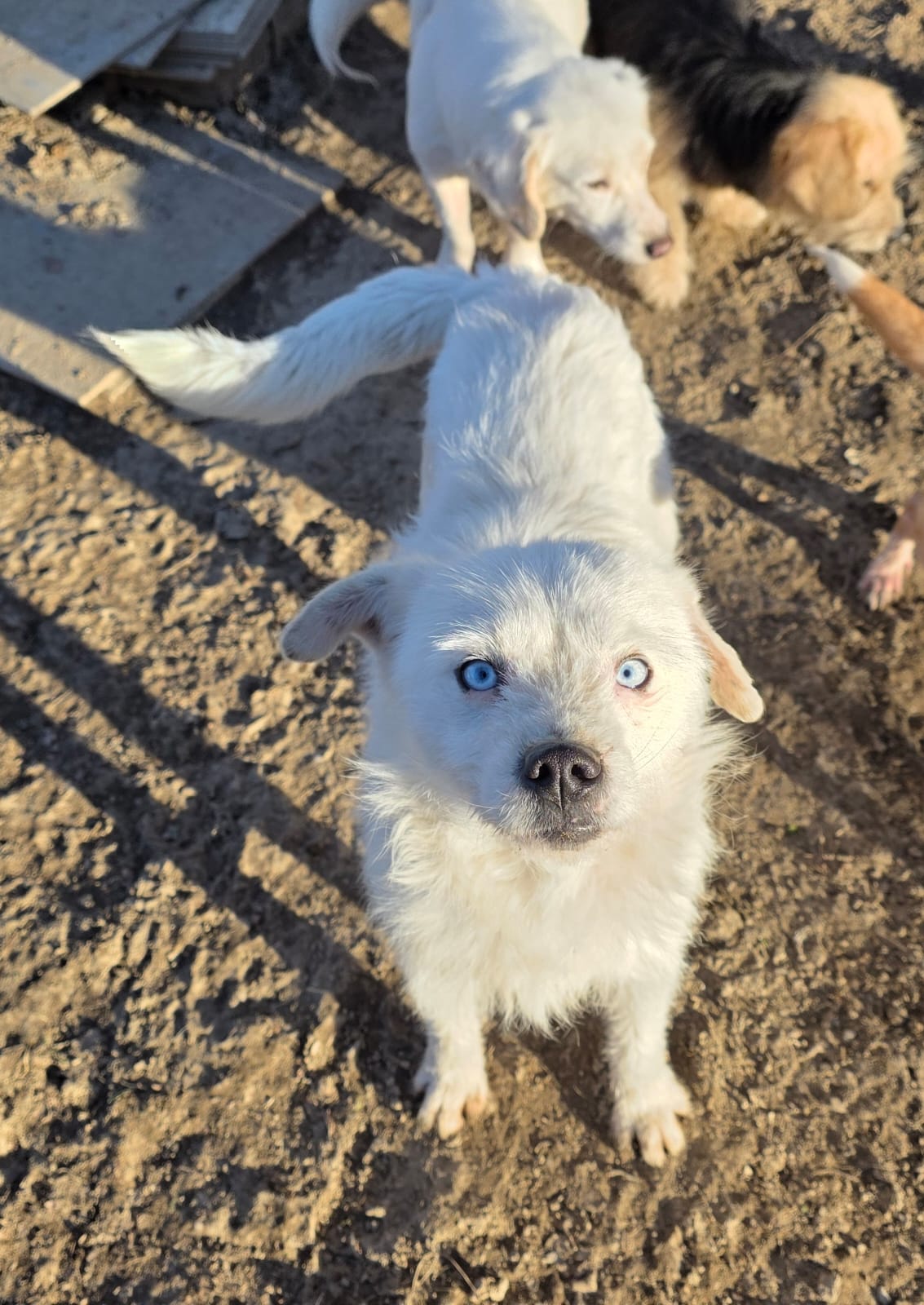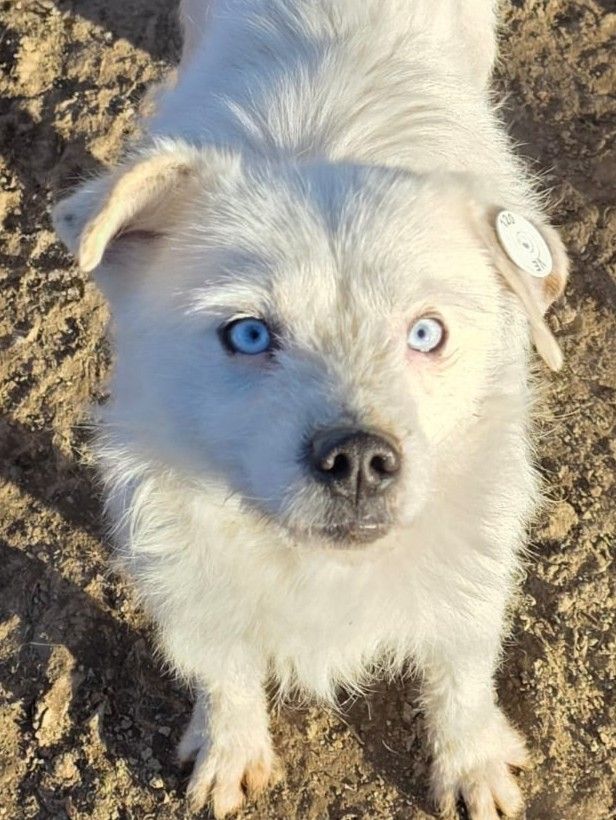 Belcho ist ein ganz besonderer Hund mit eisblauen Augen. Er ist überaus intelligent und folgt Viki überall hin; sie kann sich vor ihm nicht verstecken.
