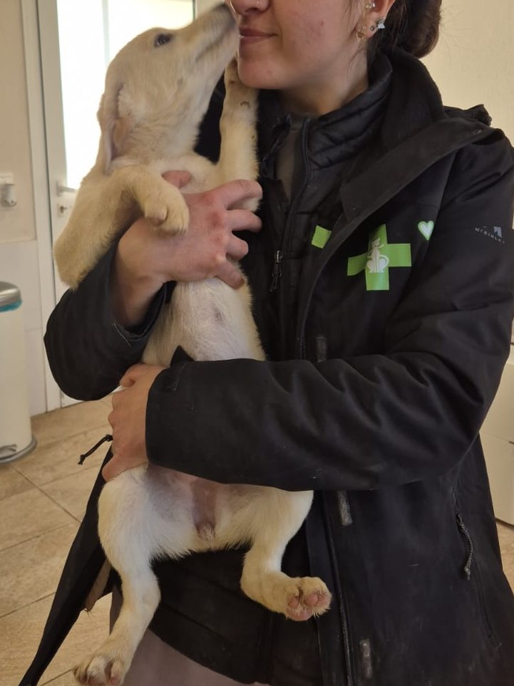 Anfang Dezember wurde unserer Tierschützerin ein Welpenfund am Rand eines Dorfes gemeldet. Vermutlich wurden Caramel und ihre zwei Schwestern von privaten Vermehrern einfach entsorgt. Zoi konnte die drei schnell sichern und zum Tierarzt bringen, wo sie als gut genährte, gesunde Welpen untersucht wurden. Bis zur Ausreise erhalten alle ihre notwendigen Impfungen und werden tierärztlich betreut.