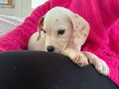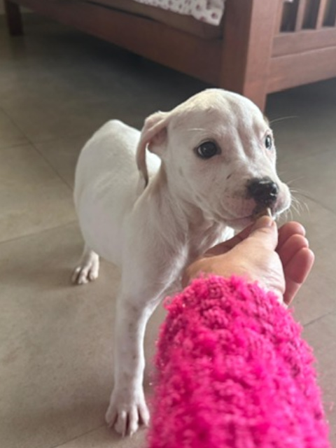 Daisy ist eine weiß-braune, kurzhaarige Hündin mit wunderschönen, neugierigen Augen – ein Blick von ihr reicht aus, um Herzen in Sekunden zum Schmelzen zu bringen! Im Vergleich zu ihren Schwestern zeigt sie sich etwas ruhiger, dabei aber ebenso menschenbezogen und liebevoll. Sie genießt Aufmerksamkeit sehr, lässt sich gerne streicheln und sucht die Nähe zu ihren Bezugspersonen. Daisy ist eine sanfte kleine Seele mit einem ausgeglichenen Wesen. In ihr steckt viel Potenzial, das mit Geduld, liebevoller Führung und positiver Förderung wachsen darf. Für Daisy wünschen wir uns ein Zuhause bei einfühlsamen Menschen, die ihr Sicherheit geben und sie Schritt für Schritt in ein erfülltes Hundeleben begleiten.