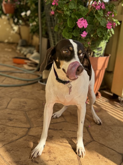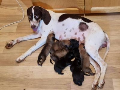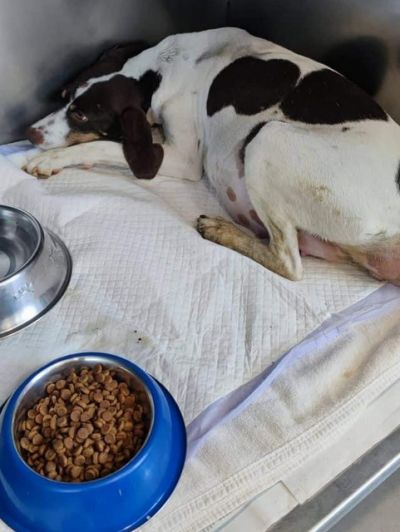 Ella - eine schüchterne liebe Seele - wurde hochschwanger, kurz vor der Niederkunft ausgesetzt oder verjagt, man weiß es nie genau; Kareen hat sie dann in Pflege genommen und drei Tage später gebar sie 7 gesunde Welpen. Alle Welpen sind längst in einem neuen Zuhause und Ella durfte noch bei Kareen, ihren Hunden und weiteren Pflegehunden sowie Katzen bleiben, um Selbstvertrauen dazu zu gewinnen und jetzt liebt sie nichts mehr als Kuscheln und Spazierengehen.