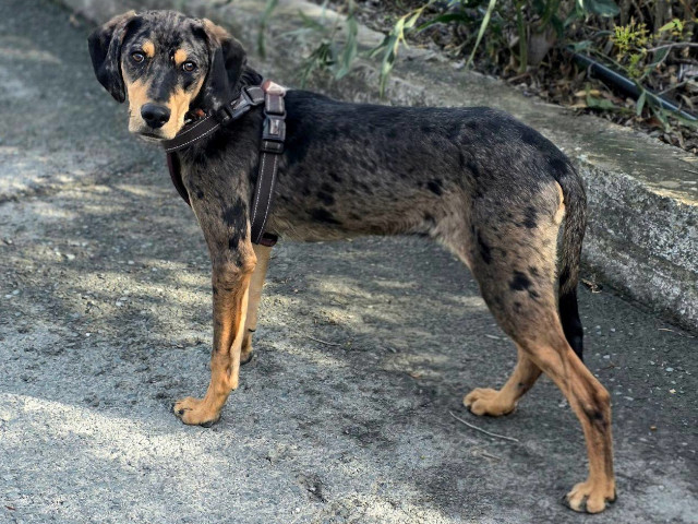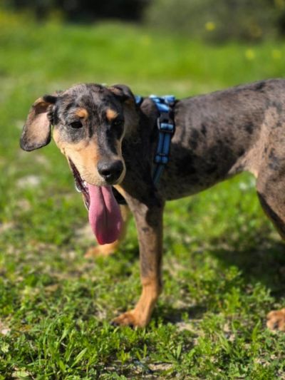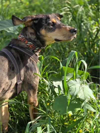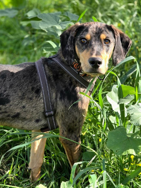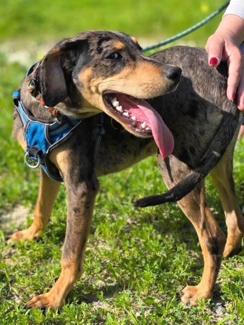 Der junge Bracke-Mix ist eine echte Frohnatur. Harris ist ein neugieriger, intelligenter und sehr liebenswerter junger Rüde. Voller Lebensfreude erkundet er die Welt und genießt dabei jede Aufmerksamkeit, die er bekommen kann. Mit seinem liebenswerten Wesen und seinem Charme gewinnt er schnell alle für sich, ohne je aufdringlich zu sein. In ihm steckt jede Menge Potenzial – und wir sind sicher, dass er in seinem eigenen Zuhause noch weiter aufblühen und zeigen wird, welch kleiner Charmeur in ihm steckt. Mit anderen Hunden versteht sich Harris prima, er rennt und spielt begeistert. Fremden gegenüber ist er anfangs etwas vorsichtig, taut aber schnell auf, wenn man ihm freundlich und geduldig begegnet.