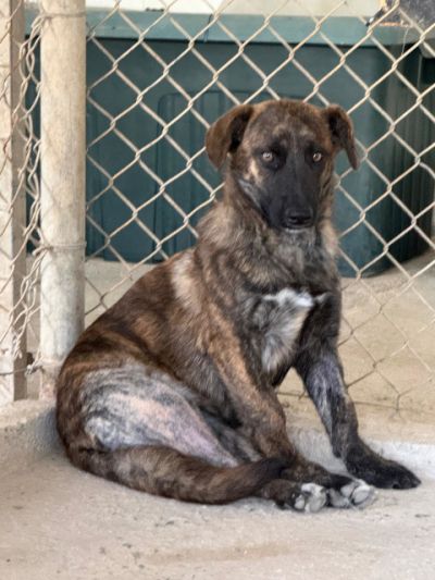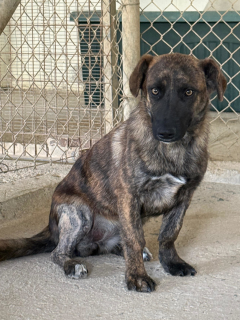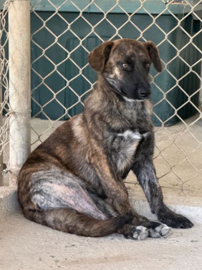 Honey - wurde spät in der Nacht allein im Dorf Xylofagou gefunden, das nicht weit vom Argos-Tierheim entfernt liegt. Der Mann, der sie aufnahm, brachte sie zu sich nach Hause und richtete ihr in seinem Garten eine provisorische Unterkunft ein, aber das Holz fiel auf sie und brach ihr das Bein. Sie wurde operiert und kann wieder gut laufen. Jetzt wird sie von den freiwilligen Helfern spazieren geführt und alles nimmt einen guten Verlauf.