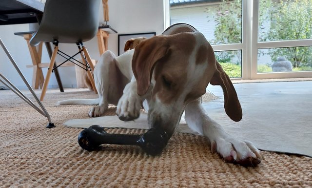 Er kam mit 4 Monaten in unsere Familie nach Deutschland und wird da als Zweithund gehalten.