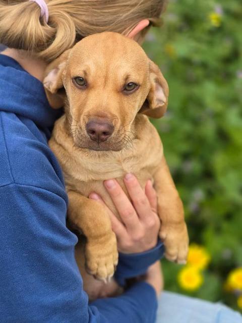 Jabba kennt noch keine Katzen, aber da er ein Welpe ist, wird er sich auch an Katzen gewöhnen, die aber auch ganz lieb sein sollten.