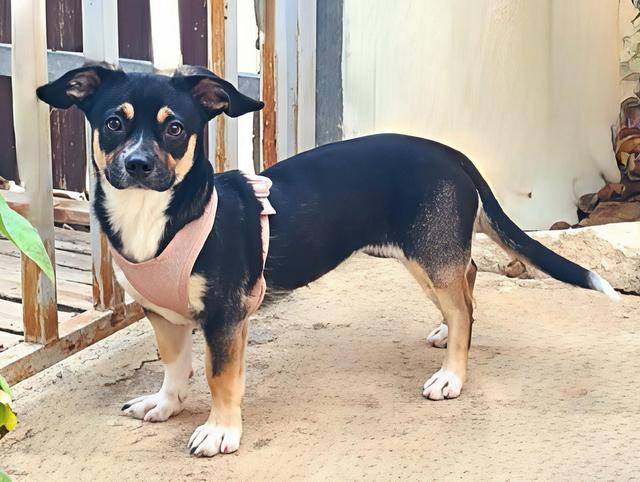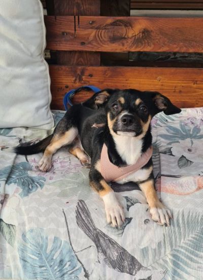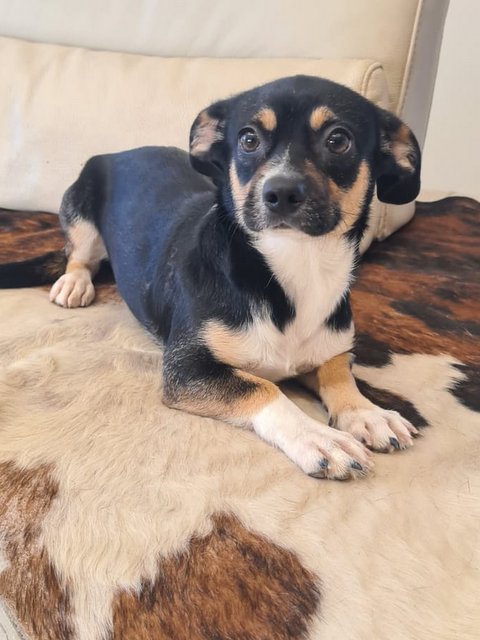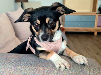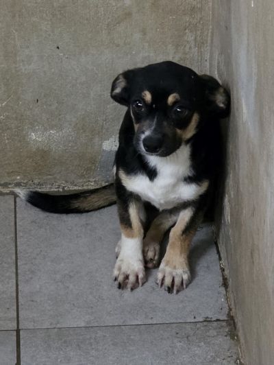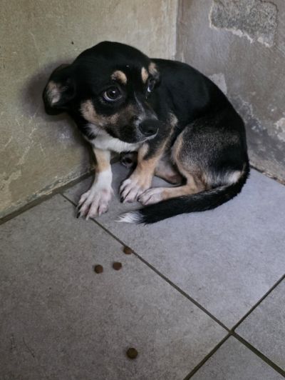 Eine kleine lustige Welpenmaus, verspielt, fröhlich, zu allen freundlich. Ihre kugelrunden braunen Augen schauen nun positiv in die Welt.
