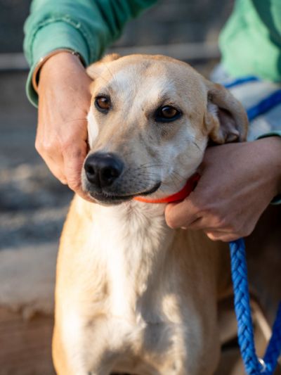 Die sanfte Mango ist eine besonders liebe und ruhige Hündin, die mit ihrem zurückhaltenden Wesen sofort die Herzen berührt. Sie zeigt sich im Tierheim als freundlich und menschenbezogen, begegnet neuen Situationen jedoch zunächst vorsichtig und beobachtend. Mango ist ein süßes und sehr sanftes Hundemädchen, das die Nähe zu Menschen genießt, ohne dabei aufdringlich zu sein. Sie fordert Aufmerksamkeit auf eine ganz zarte Art ein: Statt vor Aufregung hochzuspringen, kommt sie ruhig näher und zeigt mit wedelndem Schwanz und ihrer Nase, dass sie sich über Zuwendung freuen würde. Diese feine, höfliche Art macht sie zu einer besonders angenehmen Begleiterin. Sie läuft bereits gut an der Leine und zieht nicht. Spaziergänge meistert sie entspannt und genießt die gemeinsame Zeit mit ihren Menschen. Mit anderen Hunden versteht sich Mango gut – sie ist sozial und unkompliziert im Umgang.