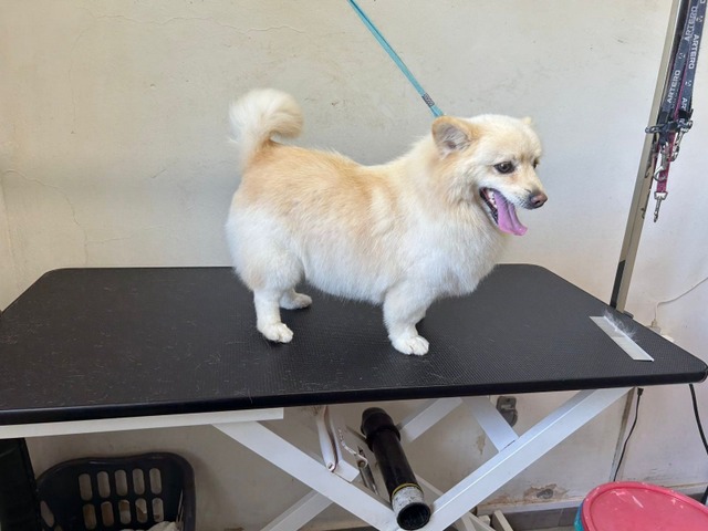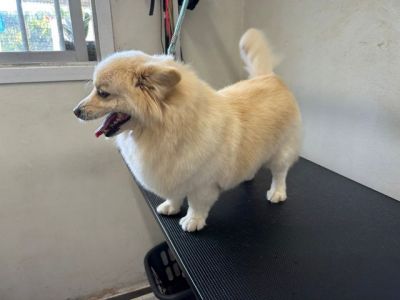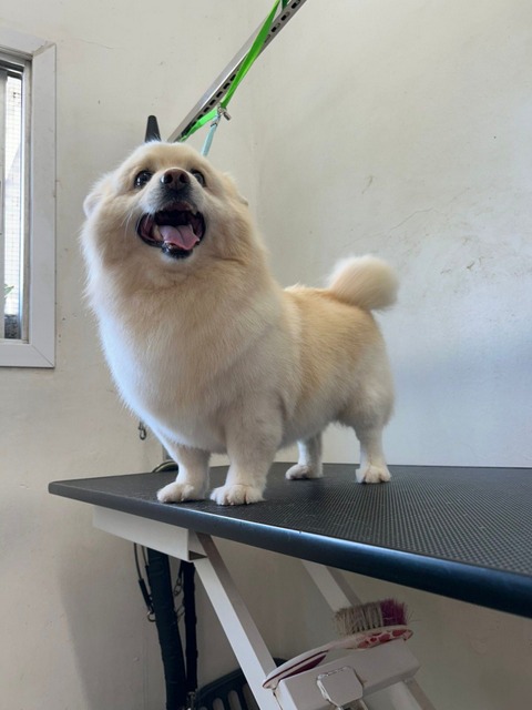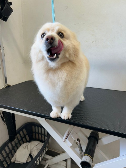 Beim Hundefriseur war er total brav.