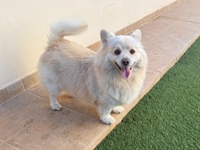 Marsh sieht aus wie ein Korgi- Pomerianian Spitz der trotz seiner schlimmen Vergangenheit liebe Menschen ganz toll findet.