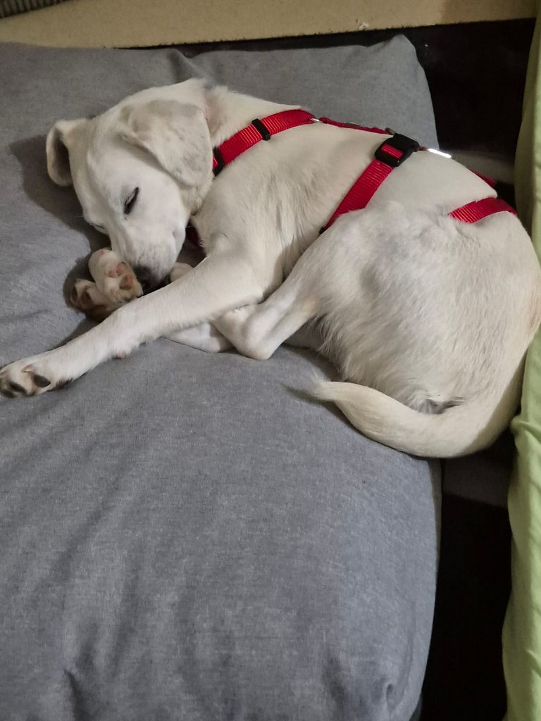 An der Leine läuft sie bereits ganz vorbildlich und lässt sich ihr Geschirr problemlos anziehen. Sie bleibt stets aufmerksam und orientiert sich an ihren Menschen, besonders wenn neue Situationen oder unbekannte Umgebungen auf sie zukommen. Vorsichtig, aber mutig – mit dem richtigen Halt an ihrer Seite meistert sie alles.