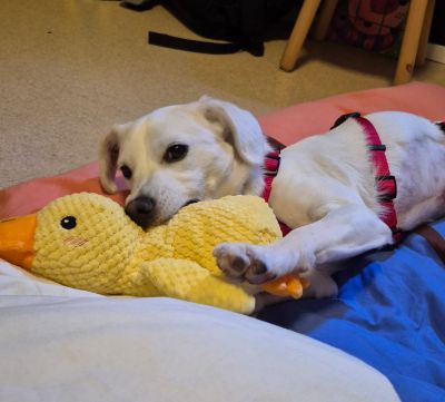 Nachts zeigt sie sich von ihrer gemütlichen Seite: Wie ein kleines Murmeltier schläft sie zuverlässig durch. Die ersten Grundkommandos wie Sitz und Platz hat sie schnell verstanden, und auch bei der Pflege zeigt sie sich geduldig – Duschen und Pfötchen reinigen sind kein Problem für sie.