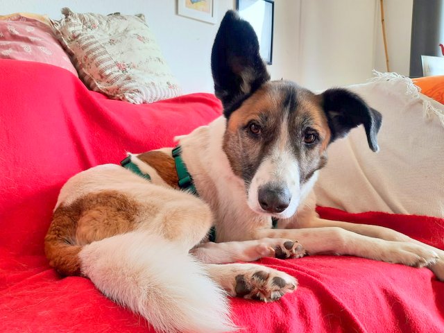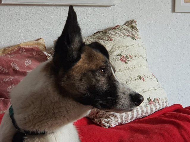 Ansonsten bin ich eine echte Schmusebacke. Leider gehen diese Kuscheleinheiten natürlich hier in der Pflegestelle bei so vielen HUnden oft unter, was schade ist.