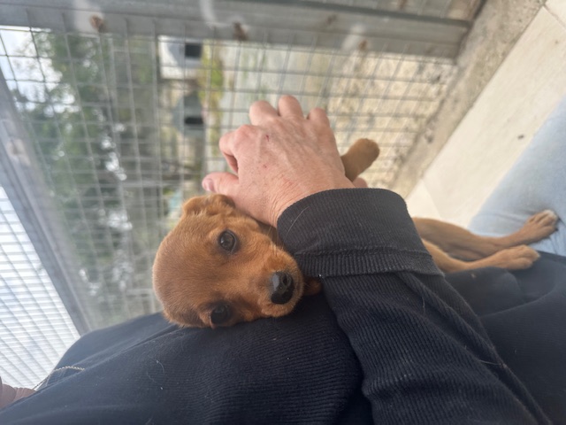 Nutmeg ist ein kleines Seelchen voller Hoffnung, das endlich ankommen und geliebt werden möchte – ein Welpe, der mit seiner Sanftheit und seinem Charme jedes Zuhause bereichert.
