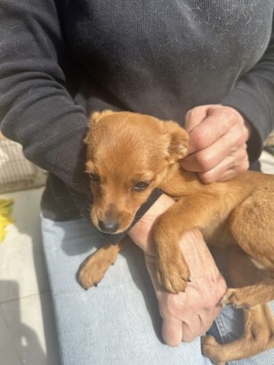 Nutmeg wurde im März 2026 gemeinsam mit ihrer Schwester Nellie und ihrer Mutter aus sehr schlechten Haltungsbedingungen gerettet. Die kleine Familie lebte draußen, ohne Schutz und ohne Versorgung. Der Besitzer wollte die Welpen nicht behalten und auch die Mutter nicht kastrieren. Erst nachdem zugesichert wurde, dass alle drei aufgenommen werden, durfte die kleine Familie gehen. Jetzt ist Nutmeg in Sicherheit. Bald darf sie dann hoffentlich endlich erfahren, wie sich ein liebevolles Leben in einer Familie anfühlt.
