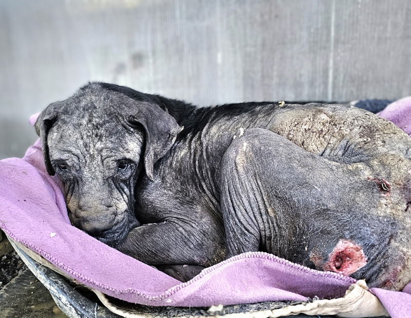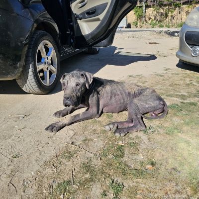 Santiago hatte offensichtlich Besitzer, aber als er krank wurde, wurde er in einem Dorf entsorgt, wo die Menschen Tiere grausam behandeln.