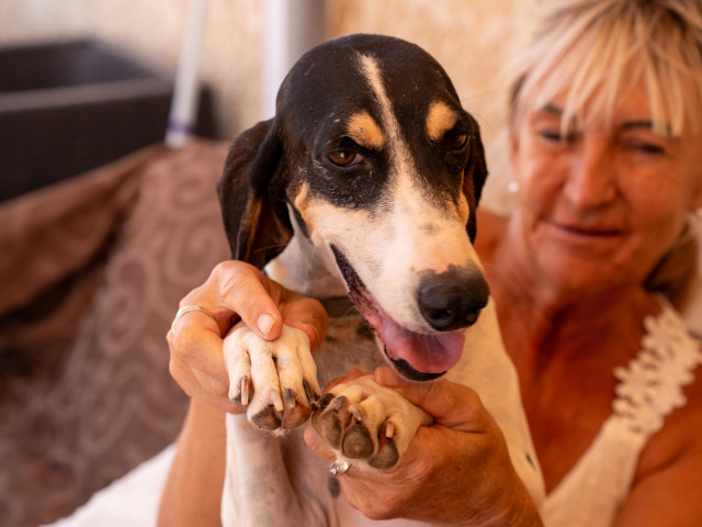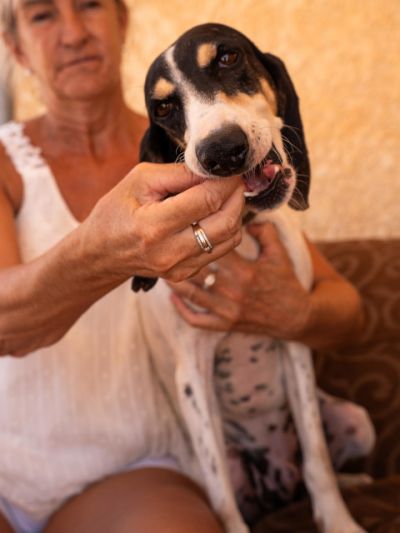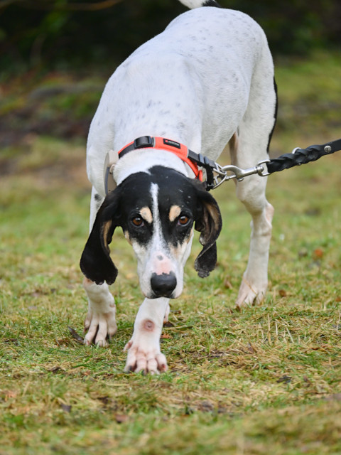 Remko ist ein kurzhaariger Rüde mit umwerfend langen Ohren. Er ist super freundlich zu jedem, den er trifft und liebt die Aufmerksamkeit und Streicheleinheiten. Er ist sehr auf Nahrung fixiert, da er wahrscheinlich die letzte Zeit auf der Straße lebte und keinen Menschen hatte, der sich um ihn kümmert und ihm normales Hundefutter anbot. Leider war seine Rute am Ende gebrochen und man hat ein kleines Stück amputieren müssen, nachdem er in Sicherheit im privaten Shelter bei Lorraine war. Bisher wurde kein ausgeprägter Jagdinstinkt festgestellt. Remko spielt gerne mit den anderen Hunden und folgt Lorraine um Aufmerksamkeit zu bekommen.